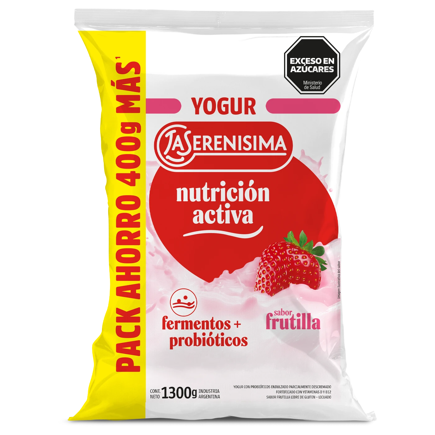 YOGUR CON PROBIÓTICOS ENDULZADO PARCIALMENTE DESCREMADO FORTIFICADO CON VITAMINAS D Y B12 SABOR FRUTILLA LIBRE DE GLUTEN – LICUADO