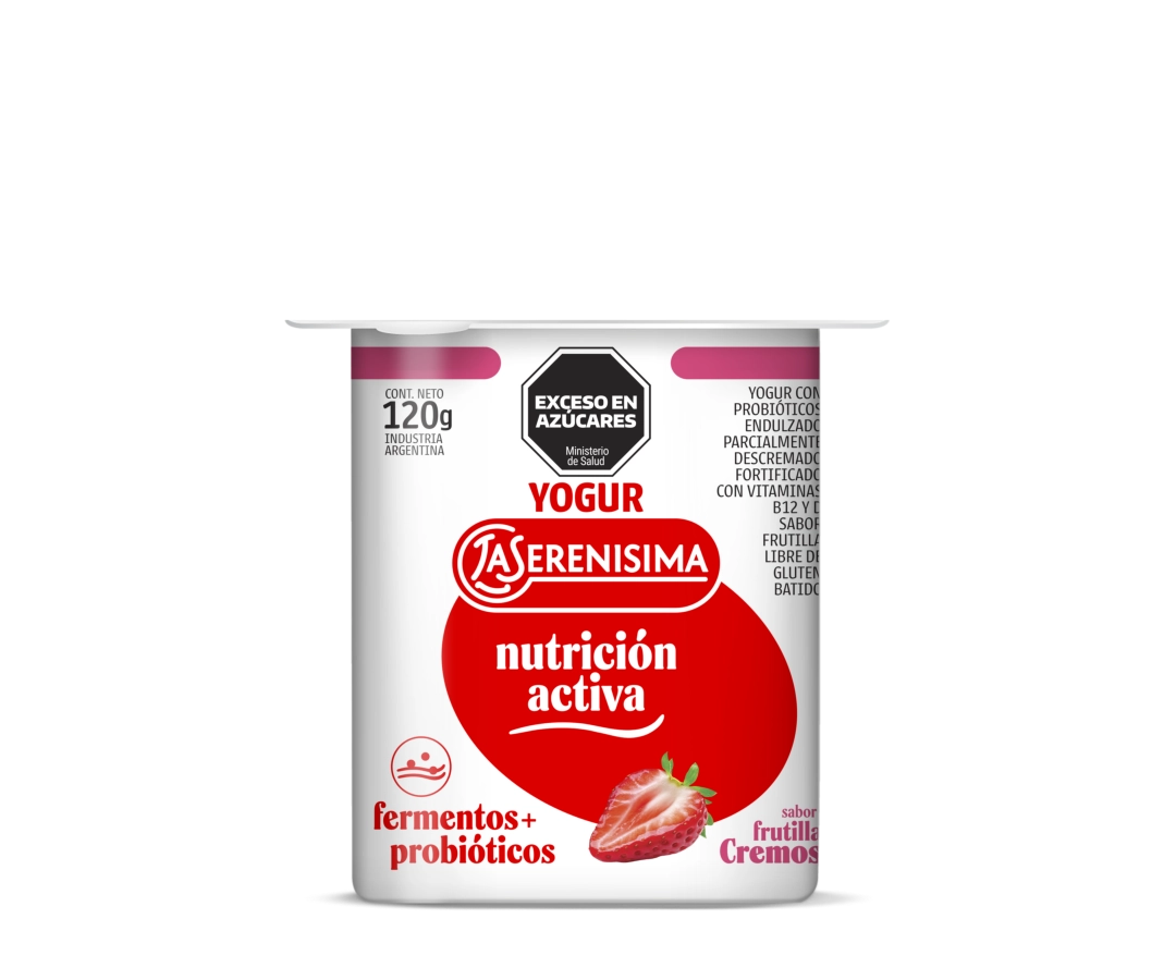 YOGUR CON PROBIÓTICOS ENDULZADO PARCIALMENTE DESCREMADO FORTIFICADO CON VITAMINAS B12 Y D SABOR FRUTILLA LIBRE DE GLUTEN – BATIDO